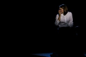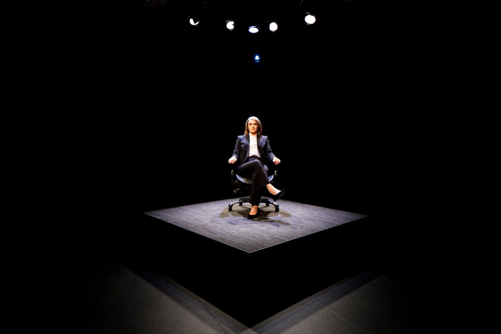Lighting, sound and costuming in Prima Facie emulate the concept of ‘less is more’. Harbridge plays with the light and shadow of a single spotlight to mark the passing of time, while sound emulates a heartbeat building anticipation, dread, and sometimes outright panic. Tessa’s costume changes only once when she swaps her black blazer for a bright red one, clearly marking ‘before’ and ‘after’.
