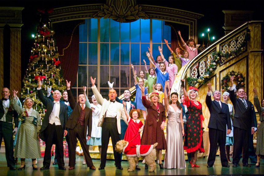 Right: A scene from the hit 1977 Broadway musical Annie.