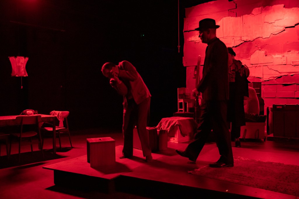 Every cast member puts on a strong performance. Despite their obviously fantastical natures, the believability and chemistry of the trio of characters Bazil encounters while adrift at sea – the clown, the polar bear and the strongman – is excellent, their puns on point and their performance of absurdist theatre a masterclass in the genre. Jamie Oxenbuild as Bazil Thorne shows the inner turmoil of his character, the feeling that he’s not in the right place but also can’t or won’t quite find his way back in subtle but powerful ways, often simply not buying into the absurdist acts of his newfound friends or mimicking but not mirroring their actions so that we in the audience know he doesn’t belong.
