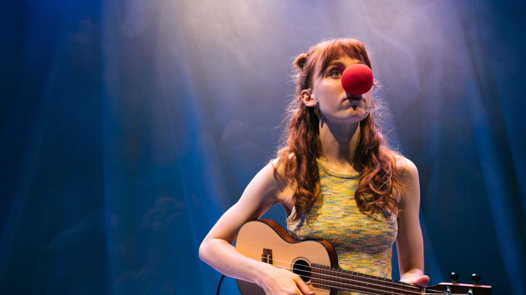 Morgan has a certain whimsy and playfulness about her movement and way of speaking, and an expressive face that communicates both the extreme highs and heartbreaking lows of the show. Her voice is refreshingly light, well suited to singing her diverse portfolio of songs about the impending end of the earth, bumps in bad places, and learning to cope with grief.