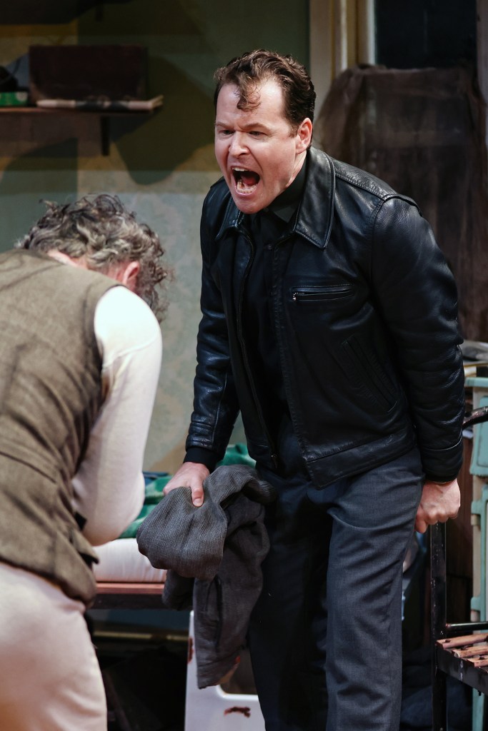 Each has their own low-stakes pursuits – Davies wants a good pair of shoes, Aston wants to build a shed in the backyard, and Mick wants to renovate his flat. These recurring topics of conversation form the absurdist component of the production and lay a foundation over which Pinter layers more serious topics – most prominently Davies’ selfishness in actively undermining Mick and Aston’s relationship for his own benefit, and ultimately to his own downfall – turning it into literary drama.
