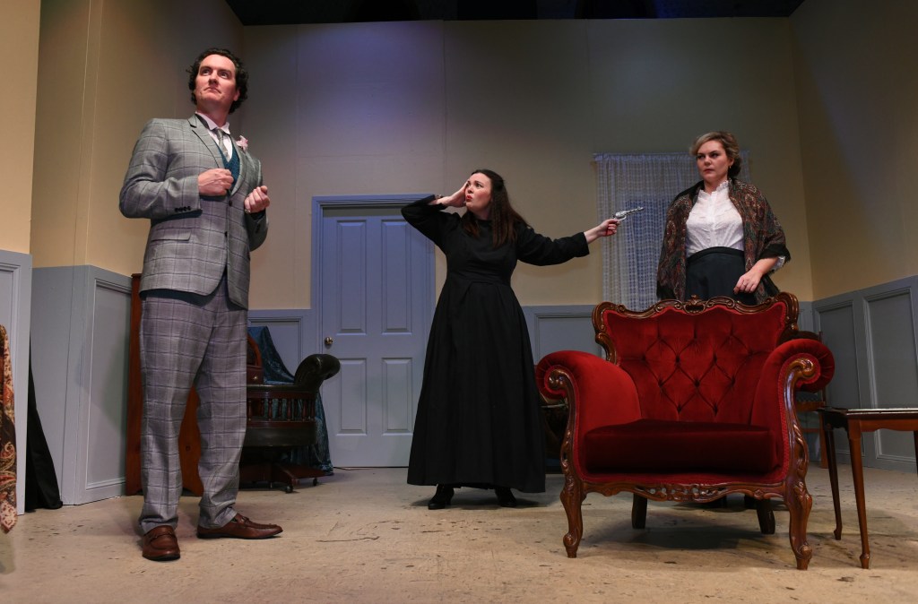 Neilson Brown and Carlin Hurdis are a strong pairing as Sherlock Holmes and Dr Watson respectively. Nathan Moss and Molly Haddon as Oscar Wilde and his long-time friend Lillie Langtry (the ‘Jersey Lily’) have great chemistry on stage, and both give standout individual performances. Igor Bulanov, Meg Girdler, and Liam O’Carroll are our thoroughly enjoyable villainous trio, as Moriarty, Mrs Tory and John Smyth respectively.