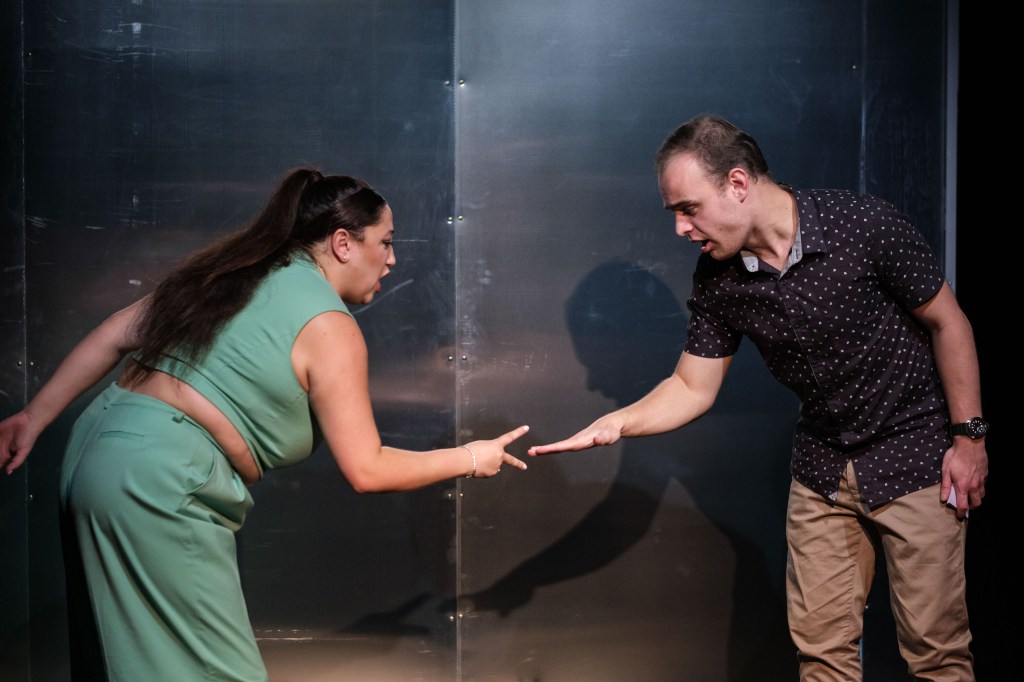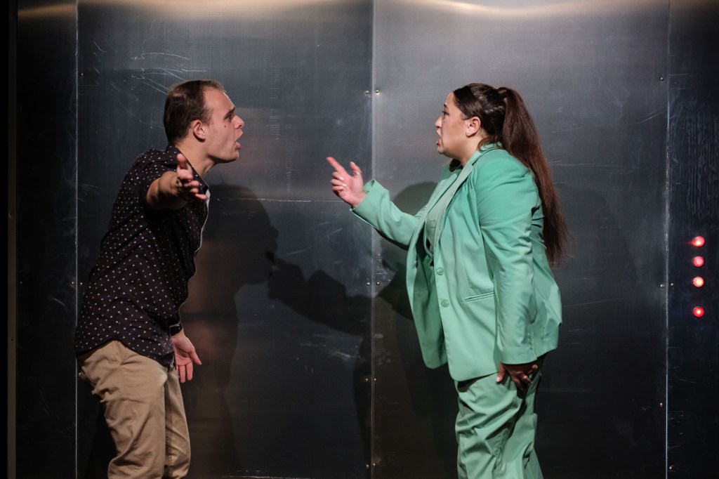 The setting of the elevator is key to the story – if only because that’s the only environment imaginable in which two recent exes would spend a prolonged period of time speaking to each other. Lily Hayman’s direction distinguishes light-hearted scenes in which the characters try to keep themselves entertained from the more serious moments of reflection and intimacy, and uses single, unobtrusive setting allows the conversation to traverse small talk, arguments and genuine reflection without distraction. Each new moment of mutual connection, however trivial (rock, paper, scissors anyone?) on what clearly was once a very loving relationship makes their parting, however necessary, more heartwrenching.