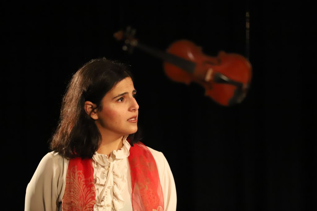 It’s an intriguing concept, placing a scientist at the centre of a story so enraptured with philosophical discussion. Papademetriou gives us an Einstein riding high on global acclaim and an unmoveable passion for science, willing to leave behind anyone and anything that gets in the way. The stage is set to reflect his point of view. There are no family photos on display, but rather pictures of fellow mathematicians and scientists, and calculations are scrawled on the walls. Amine as Margaret is righteous and stubborn, her handbag a sword in her hands as she draws out piece after piece of research designed to corner her subject into telling the truth. The two clash convincingly in their refusal to back down.