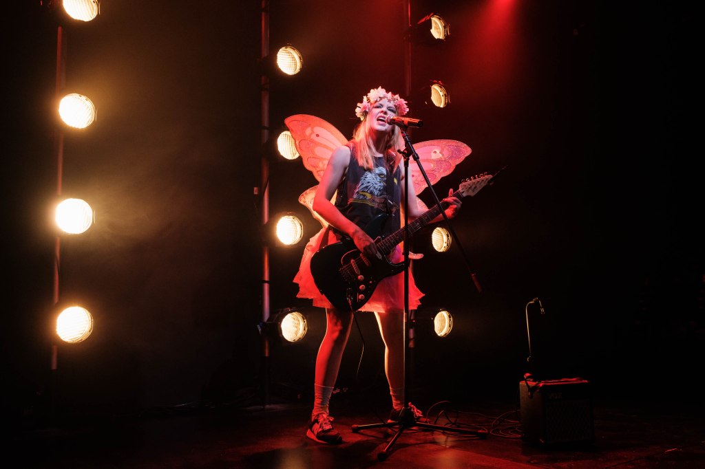 Heffernan and director Lily Hayman’s conscious juxtaposition of light and darkness in the costuming, lighting, pacing, set design and music elevate the story and allows Heffernan to fully lean into its extremes, from explaining that fairies don’t poop to talking her mother off a literal ledge, without giving the audience whiplash. It’s a delicate balancing act, and this duo nails the tightrope walk.