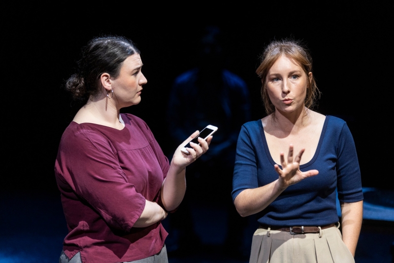 Director Carissa Licciardello and set and lighting designer Nick Schlieper present a pared-back stage containing only a wooden table and five chairs to balance the jam-packed dialogue, switching up the pace of transitions between each scene and using targeted lighting to force focus on the story at hand.