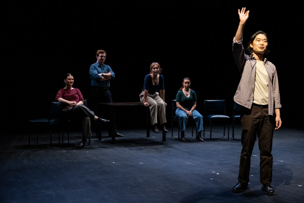 The cast is necessarily strong across the board, comfortable performing in a minimalistic context and seamlessly switching between characters, emotions and time periods. Harriet Gordon-Anderson as a mother concerned about her child in a heatwave and Charles Wu as our MC are standouts among the five. Abbie Lee Lewis, Brandon McLelland and Ariadne Sgourgos all give memorable performances. Regular audience involvement means the play succeeds in feeling more like a stimulating conversation with a well-informed group of people, rather than the lecture a topic like this could have become.