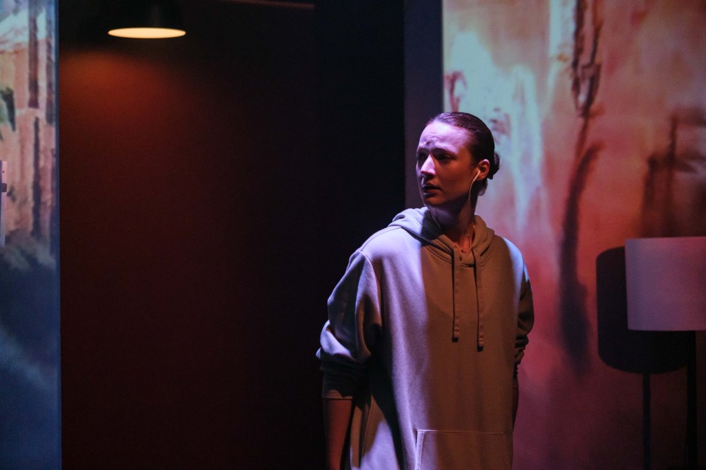 Set design is impressive, Meg Anderson managing to create the atmosphere of a lived-in home without the intimate stage of KXT feeling overstuffed. Original songs by Jake Nielsen bring an atmosphere of raised stakes, the first a folksy ditty one would sing around a camp fire in the dark and the second brooding electronica with whispery vocals. While impactful, they feel quite random within the performance.