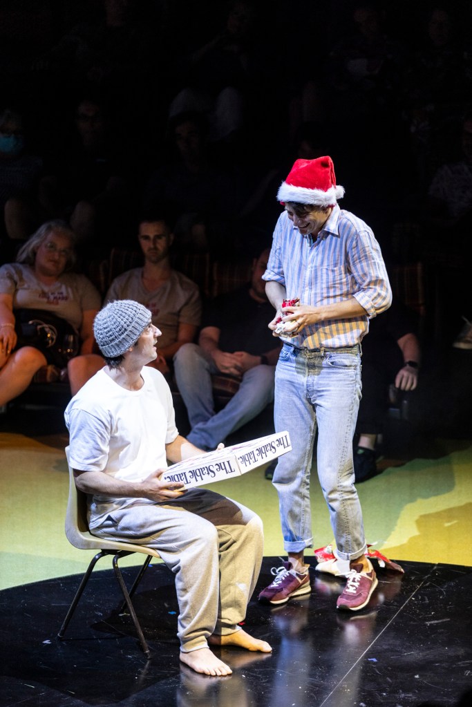 Mirroring this effect, Ball and Conroy display immense range in their depiction of John and Tim through the years. Their chemistry as a pair is off the charts, their love incredibly moving and their anger and pain even more so. Shannen Alyce Quan gives a memorable performance as Tim’s ultimate wingwoman and steadfast friend, and Rebecca Massey flies around the stage becoming a million characters, somehow pulling each and every one of them off with aplomb and applause.